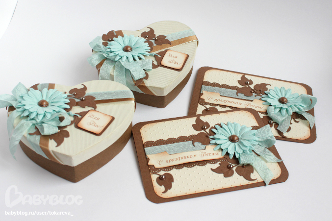 И вот такие комплекты, коробочки для подарков и к ним открытки.
