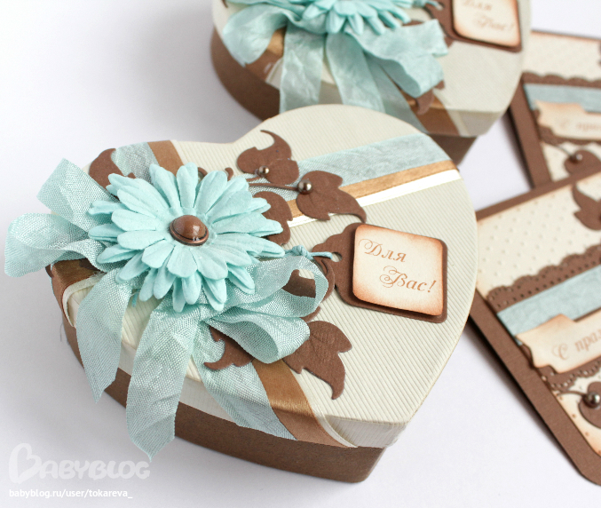 Коробочки у меня были готовые, поэтому цветовую гамму диктовали они, я их просто за декорировала.
