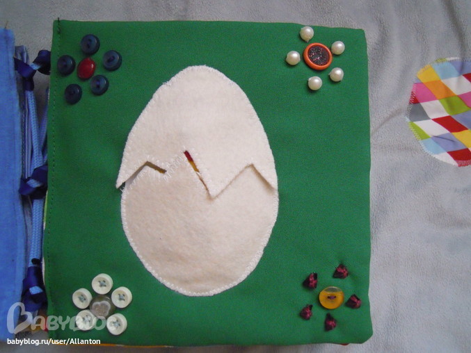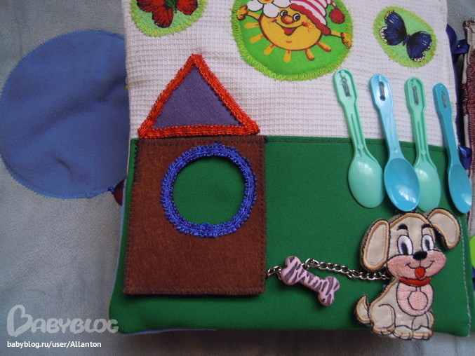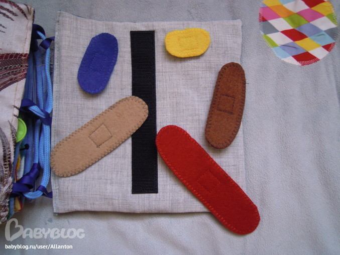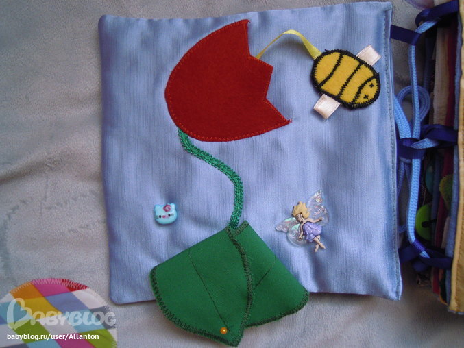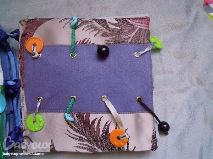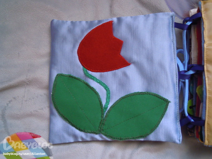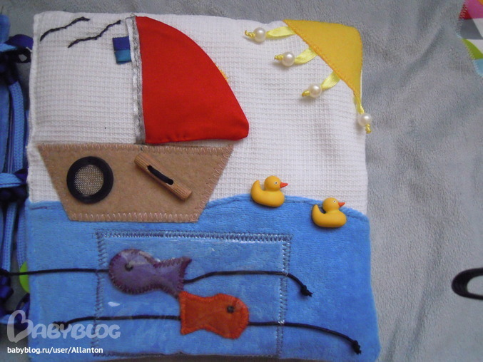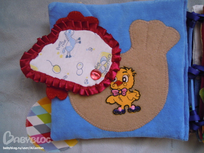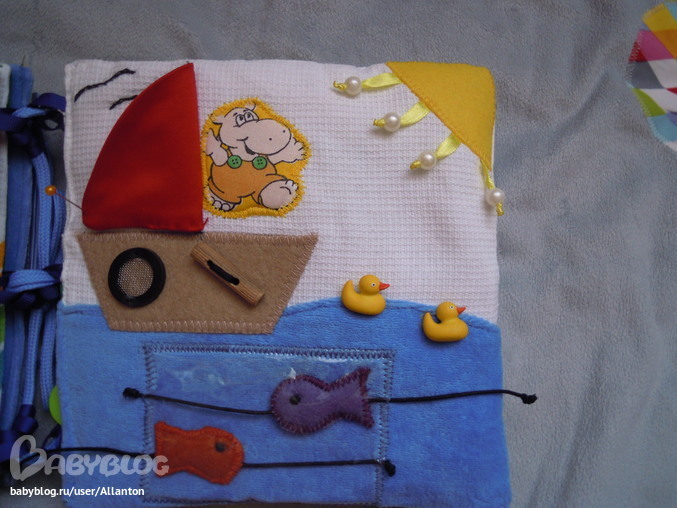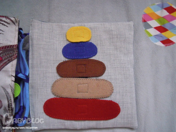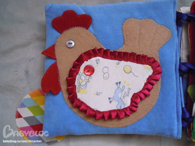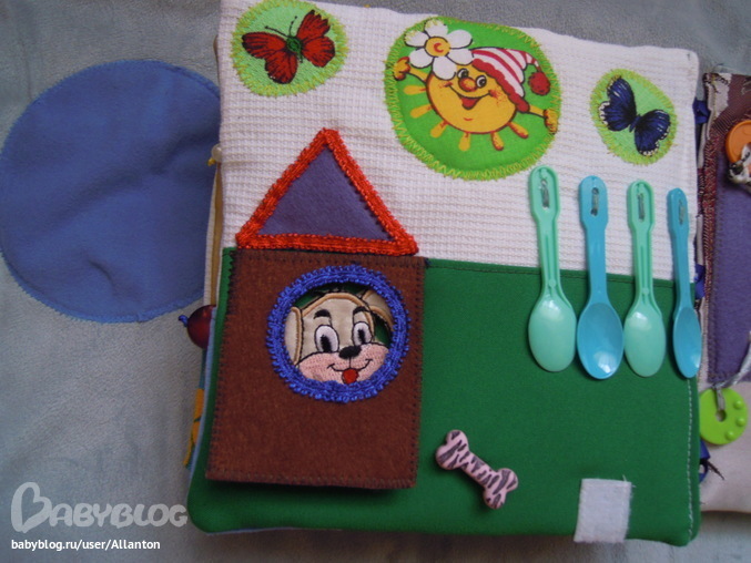 Сшила я 38 страниц развивающей книжки. Взяла лучшие, на мой взгляд, идеи у рукодельниц, за что всем большое спасибо. Материала получилось много, поэтому решила поделить на 3 книги по сложности: полегче, потруднее и еще потруднее, по возрастам. Это первая книга -- самая легкая.Размер 20 Х 20 см.