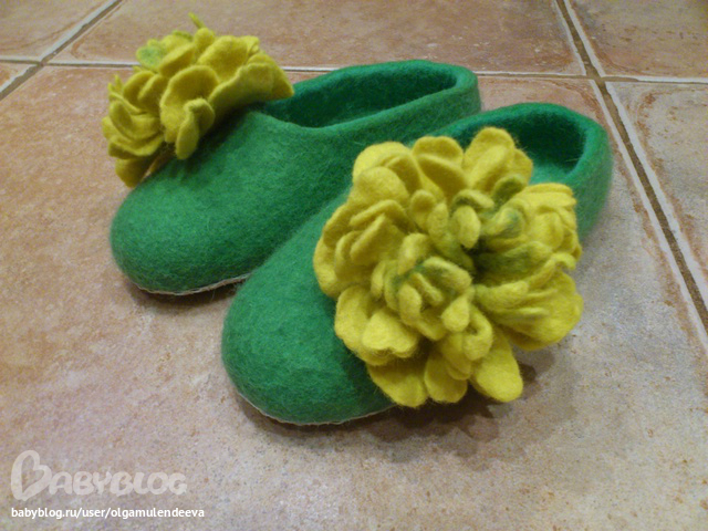 Совсем истосковалася по солнцу и теплу. Тапки эти задумались еще в декабре, но делала их очень долго. Шерсть в них и латвийский кардачес, и троицкая тонкая. Вот троицкая то и не давала мне покоя. Долго она меня мучила((( В результате усадка кардачеса на 30%, а троицкая села на все 50%. Из-за этого внутри тапка бугорки. Как ни старалась я их убрать, не уходят. Деться им видимо не куда. В общем, из планируемого 39 размера получился 35. Подошва подшита кожзамом, благодаря чему тапки прослужат ещё дольше, радуя свою хозяйку. Отличный подарок к любому празднику. Подарены любимой погруженьке.