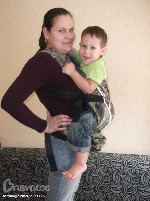 Ну и тест перед передачей. Мой сынка на два года и неделю старше и почти на 10 кг тяжелее, но уместился весьма удобно. Вес почти не чувствуется.