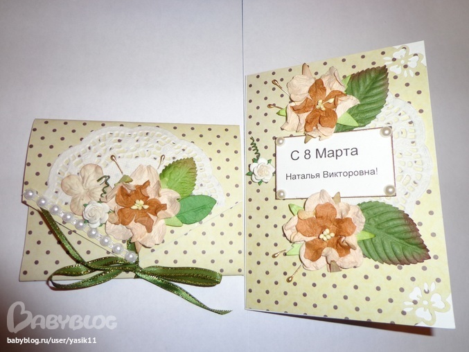 СкрапбукингСделала для учительницы на 8 марта))) открыточка и конвертик куда вложили подарочный сертификат Летуаль))