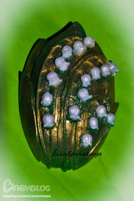 Как же мне нравятся ландыши,чудесная форма и не надоедает.Мне кажется золотой мики многовато.Вы только не обижайтесь,я со своей колокольни сужу.
