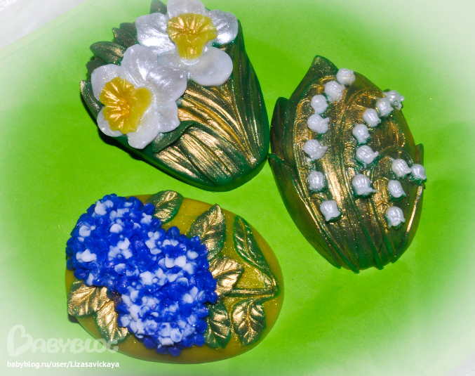 Оленька,да.....я впервый раз эти формы заливала....и как раз именно ландыши я подумала,что золотом покрывать не стоит!!!!!!Теряються)