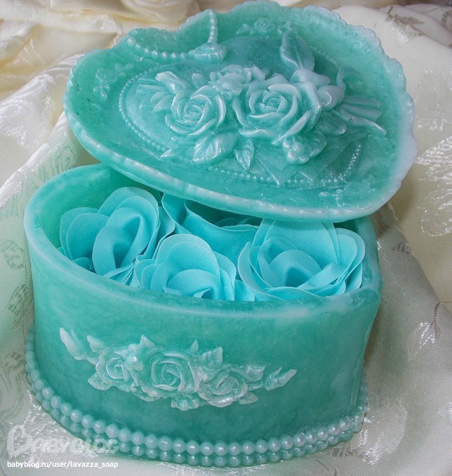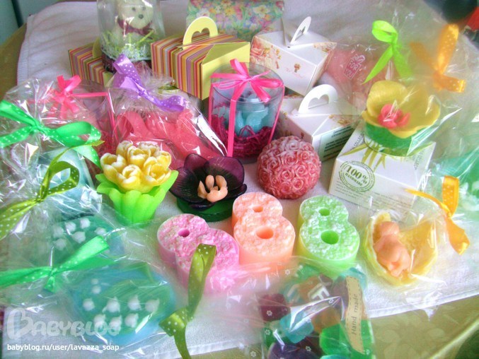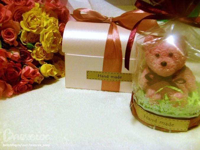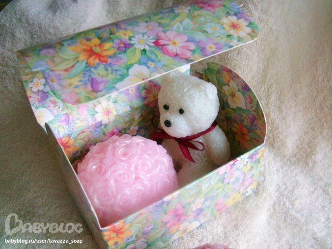 да ее можно куда угодно!))) в качестве подарка просто незаменима! дааа, у каждой свой легкий аромат, и масла добавляю также) вдруг, кто намылиться вздумает, так еще и польза будет))