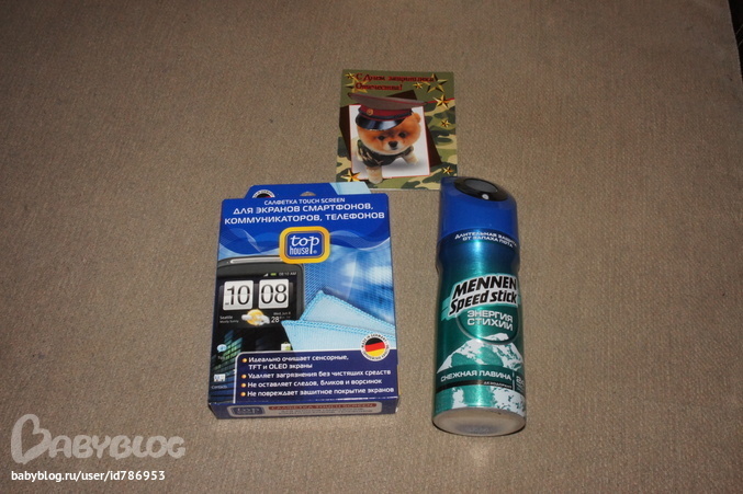 моему мужу салфетку и дезодорант .салфетку только и успела сфоткать уже захомячил