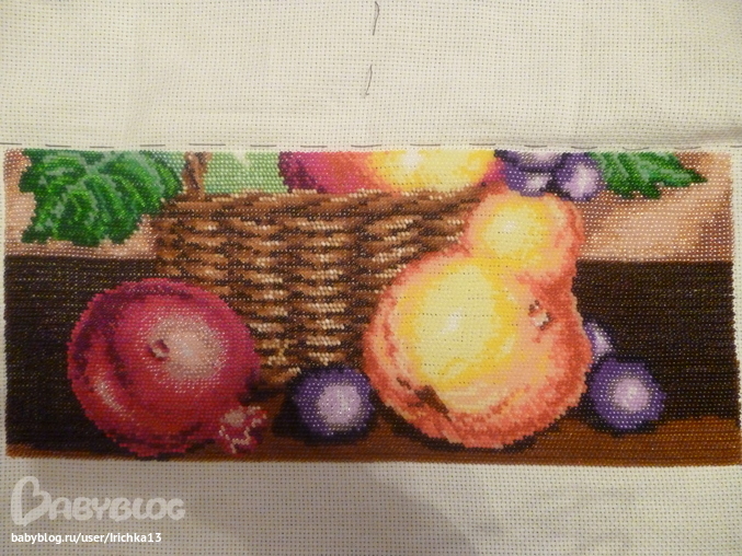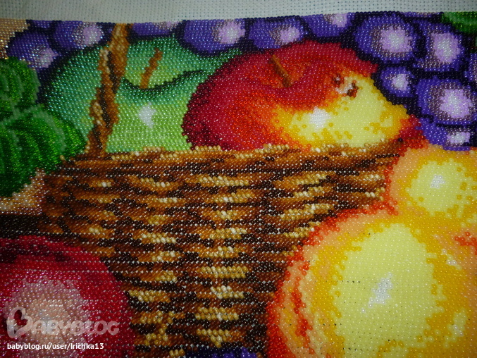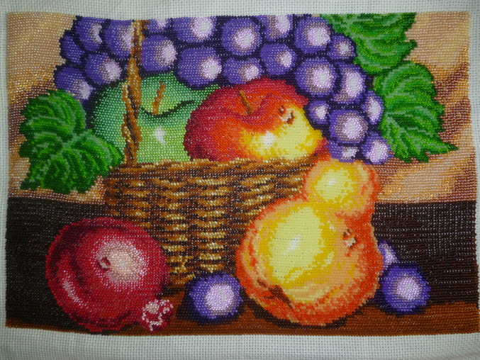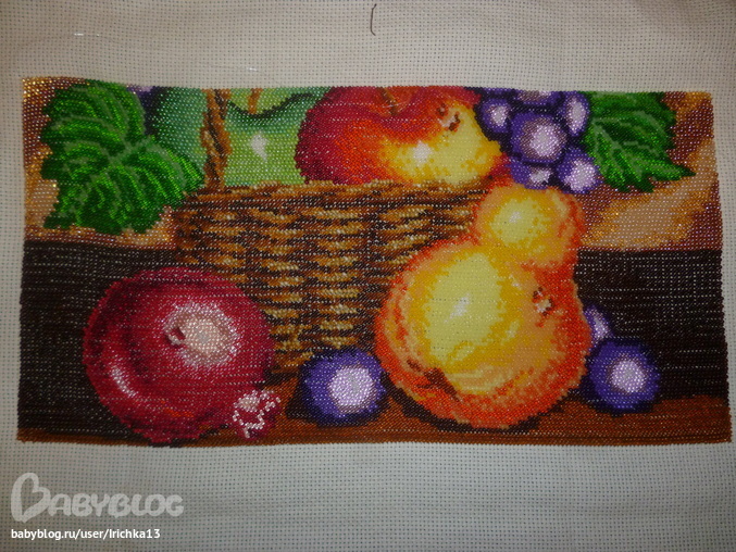 Ира, это нечто! Впервые вижу такое, чтобы все было заполнено бисером!!! Вы большая молодец! Супер получилось! Я в принципе не люблю вышивать цветы и натюрморты, но Ваша меня покорила))) Отправьте и мне пож-ста схемку и цвета бисера, зараннее благодарна!! meri_78@list.ru