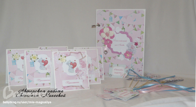 СкрапбукингКомплект для девочки на первый день рождения в тематике мишек Тедди, включате в себя: