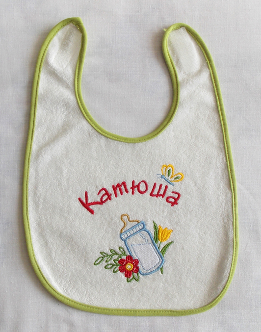 Дочка, просто лапушка)) Очаровательный слюнявчик, еще больше захотелось вышывальную машинку. Зеленый мой самый любимый цвет и он существенно преобладает в моем гардеробе и гардеробе сыночка.