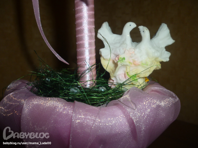 спасибо,Юль!!! розовое делала самым первым из них - понравились очень розочки нежные такие, а оно получилось прям свадебным - я голубков посадила, пока стоит у нас))))