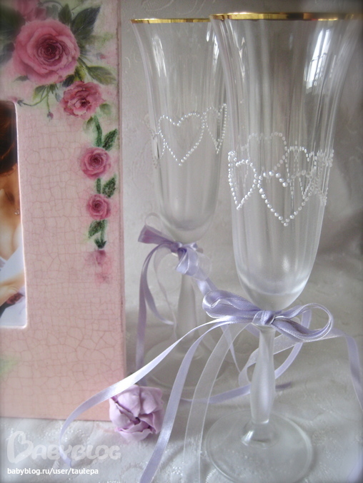3) Ну и не совсем декупаж...но всё же))) Бокалы (свадебные, но были помечены лишь бантиками))
