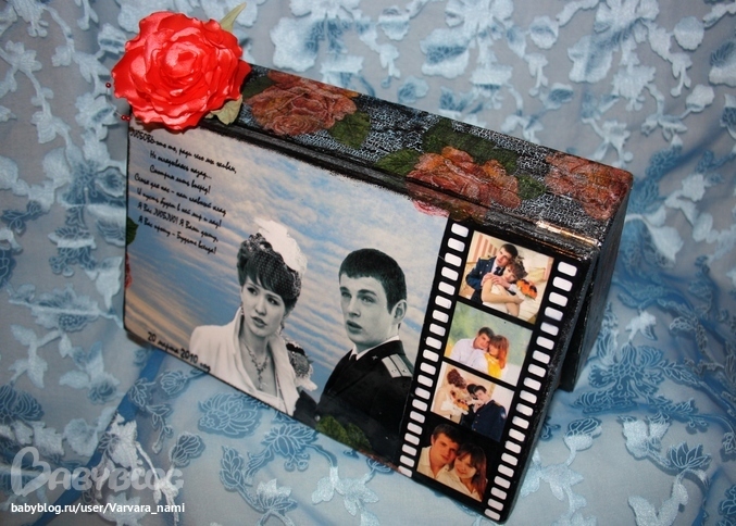 3) распечатку раслоила мокрым способом и приклеила на крышку шкатулки