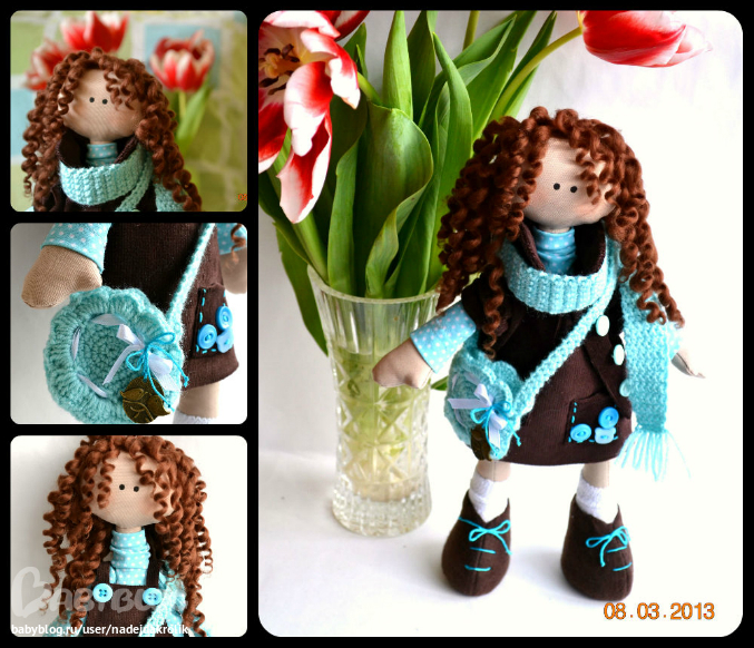 Я снова к вам с кудрявой куколкой) Все как обычно, рост 35 см, сшита вручную.