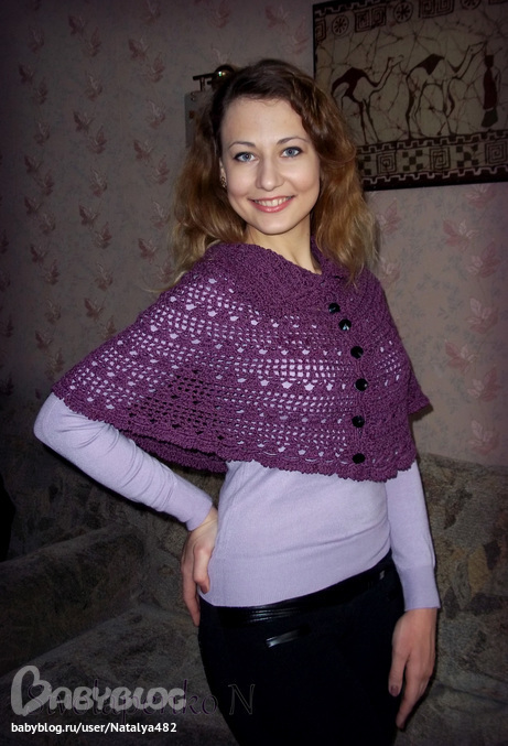 Оригинально!!Хороший вариант для лета!Этот вариант мне нравиться.Особенно когда летом заходишь в магазины а на тебя поток холода от кондиционеров,а на плечах такая красота.А схемкой не поделитись?