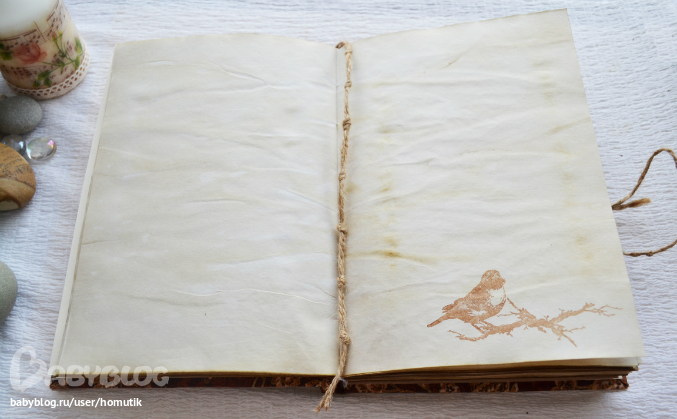 Очень понравилась "помятость" страниц. Маша, (если не ошибаюсь, Вас так зовут?) вы мяли страницы перед тем, как тонировать? А после тонировки гладили?