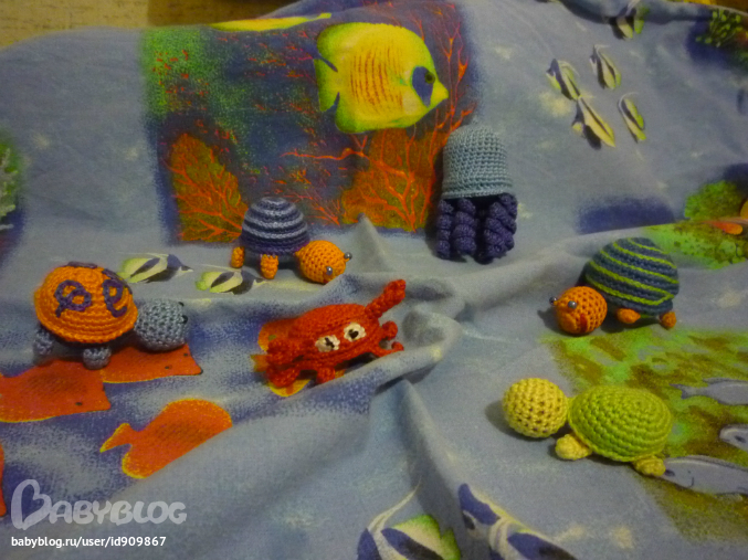 А это весь "зверинец" :) краб получился корявенький, но для первого раза меня устроил:) Осьминожка-гремелка тоже для Федюна