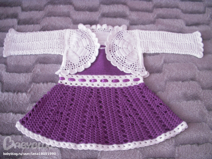 Всем спасибо за теплые слова) Есть фотографии ребеночка в этом наряде..это вообще не передать словами как классно) Но ребеночек не мой-не стала выкладывать) Ниточки использовала летние из хлопка (честно, этикетку выкинула), но думаю в магазинах выбор огромный. Только брала не сильно тонкие (потолще чем ирис раза в 2 примерно). У меня есть ссылочки, которые мне помогали в создании этого комплекта. Вот поделюсь: http://vk.com/album-32648096_165864597 В этом альбоме в группе есть схемы и описания платья! http://www.liveinternet.ru/users/werada/post222819983 А по этой ссылке я вязала болеро