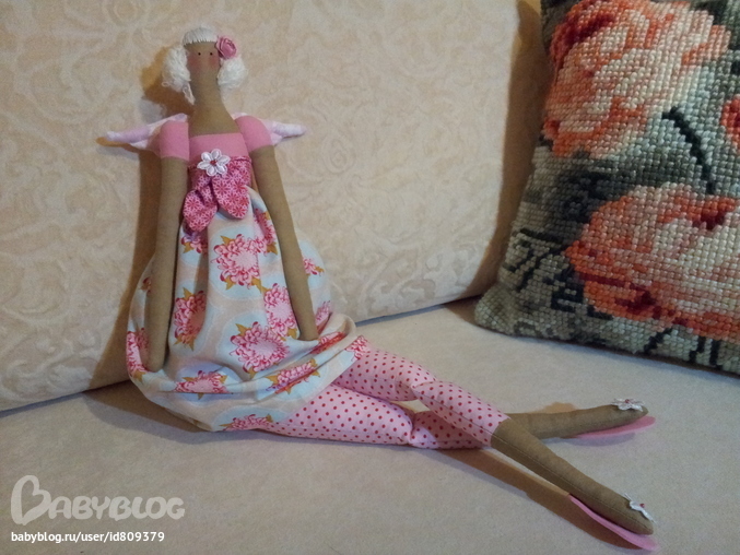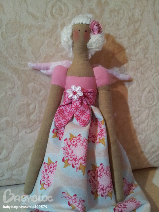 Где-то с месяц назад наткнулась в инете на кукол-тильдочек. Оказывается увлечение шить милых кукол по дизайнам Тоне Финнангер уже давно захлестнула многих рукодельниц. и как-то это прошло мимо меня:) решила и я попробовать:) и отшилась моя первая тильдочка - Цветочный Ангел: