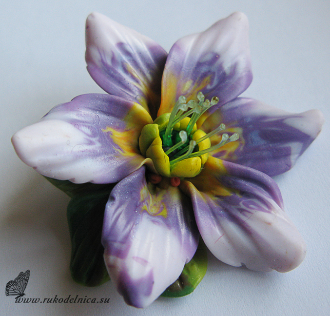 Леска белая или цветная нарезается кусочками 5 – 7 см, закрепляется в пучок при помощи глины. Если «тычинки» готовятся для изделия, где вся длина нарезанной лески может быть спрятана в стебелек, то при помощи огня нужно обработать, только края, которые будут выступать из цветка.