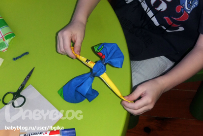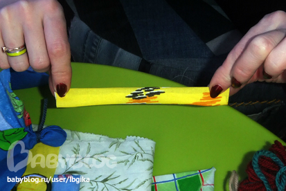 На юбку приклеиваем тесьму. Этих кукол делали дети;)))