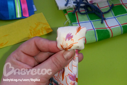 вставляем ее между материей и снова завязываем. Кукла готова!!!