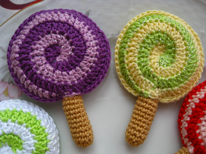 Вязала такие леденцы еще 3,5 года назад...вот решила "угостить" двух малышей, да и в нашу коллекцию продуктов пополнение...