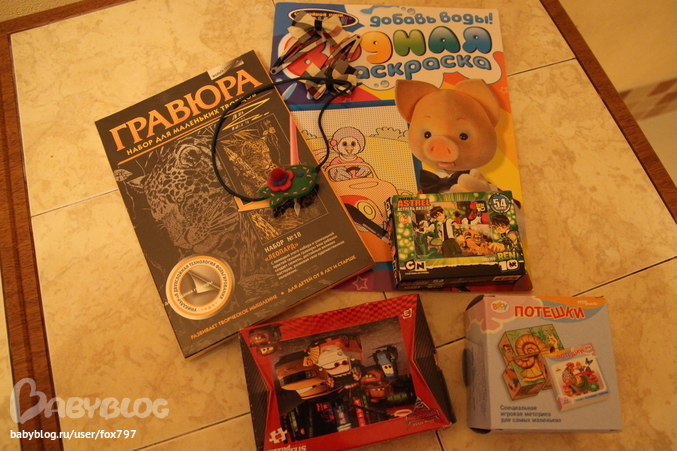 Ну в общем, ребята вроде договорились о дележе сокровища, хотя моя 8-летняя лялька пыталась отмести у полуторогодовалой ляльки раскраску. А сейчас обе ляльки радостно собирают кубики. Свою добычу Даня благоразумно пока спрятал в специально заведенный для этих целей сейф, в который мелкая доступа не имеет.
