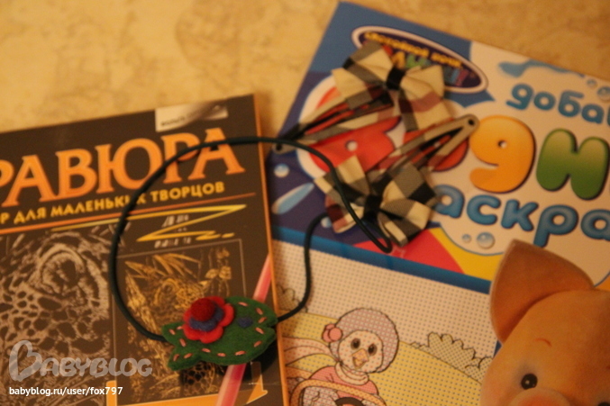 Настене: заколочки, украшение, раскраска и кубики со стишками.
