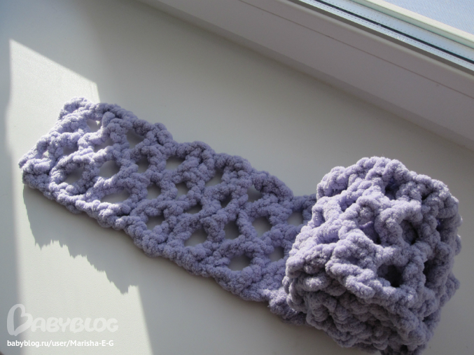 Спасибо! сама изобретала на "ощупь" что называется ...поэтому и перевязывала 3 раза :))) сначала много петель набрала, слишком широкий получился, потом убавила и вязала поочередно ряд СБН и ряд ССН, но получался какой-то дубовый, решила что нужен другой узор, взяла самый простой: 5 ВП, СБН, сделала 3 арочки, потом 2 ВП подъема и следующий ряд также, только СБН в серединку предыдущей арочки, так и пряжи меньше уходит и мягче шарфик :))