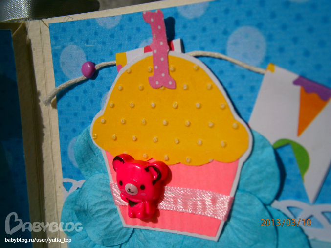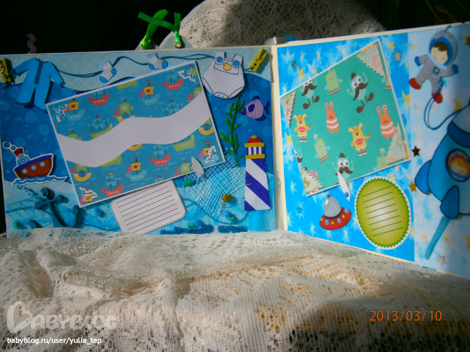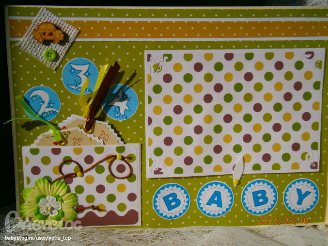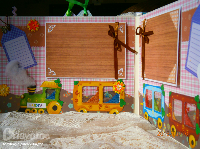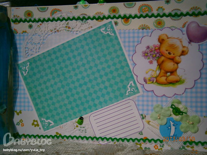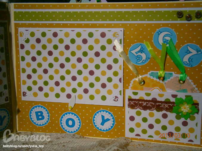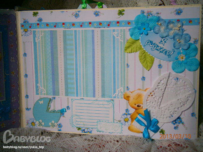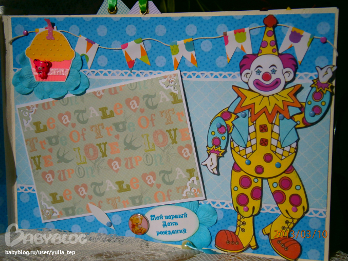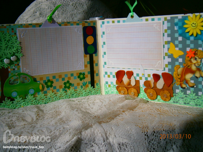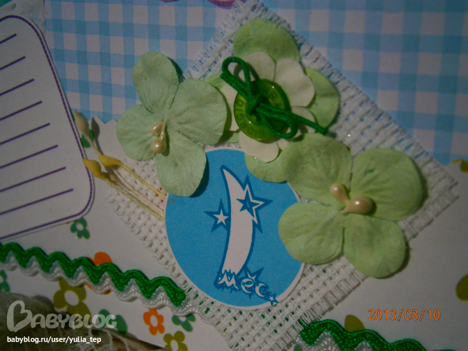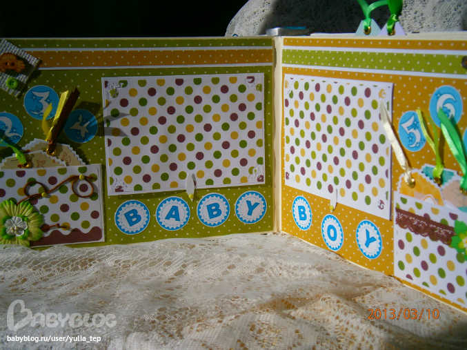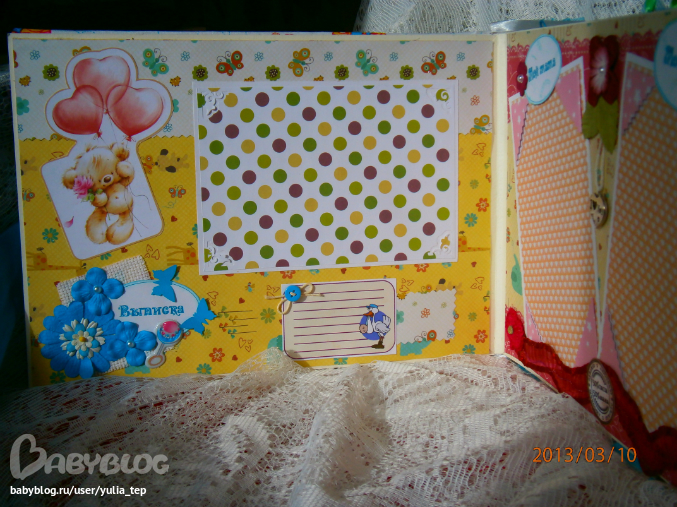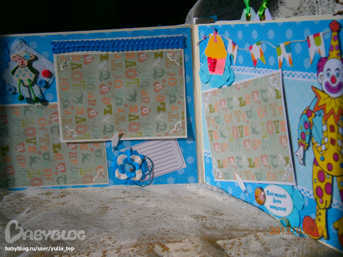 Разворот 12 мес. и первый ДР. Здесь косяк, тесьму криво приклеила((((