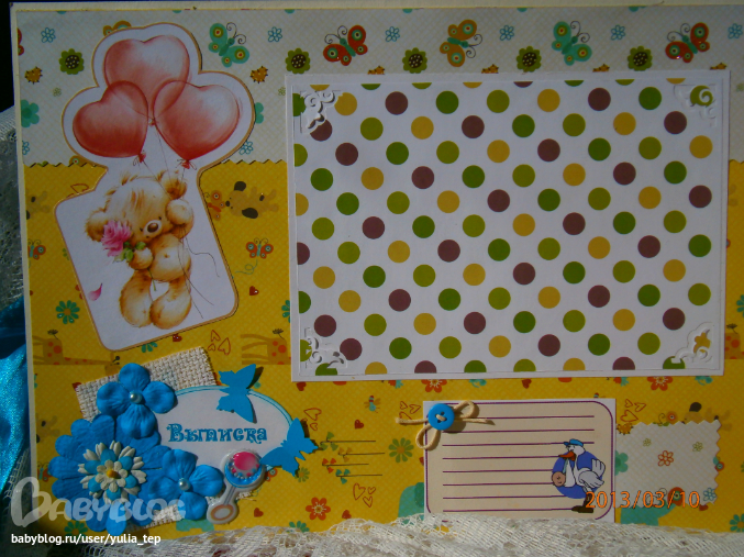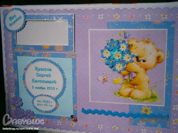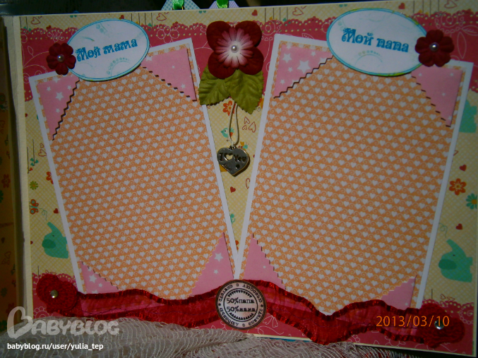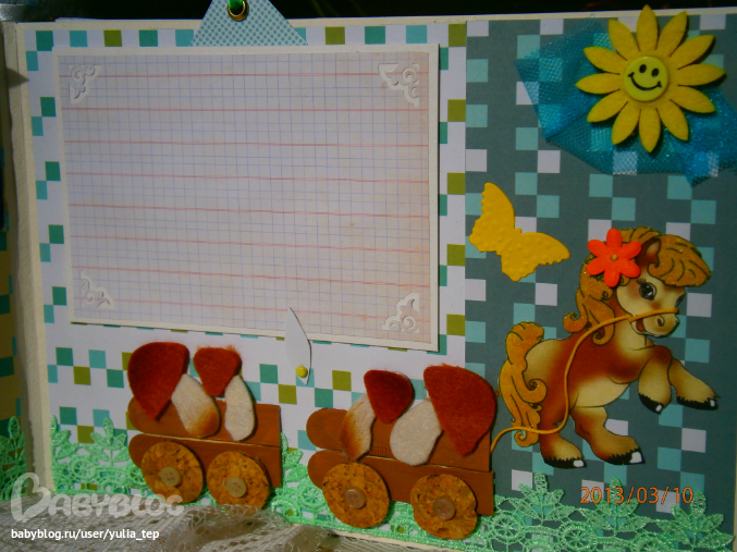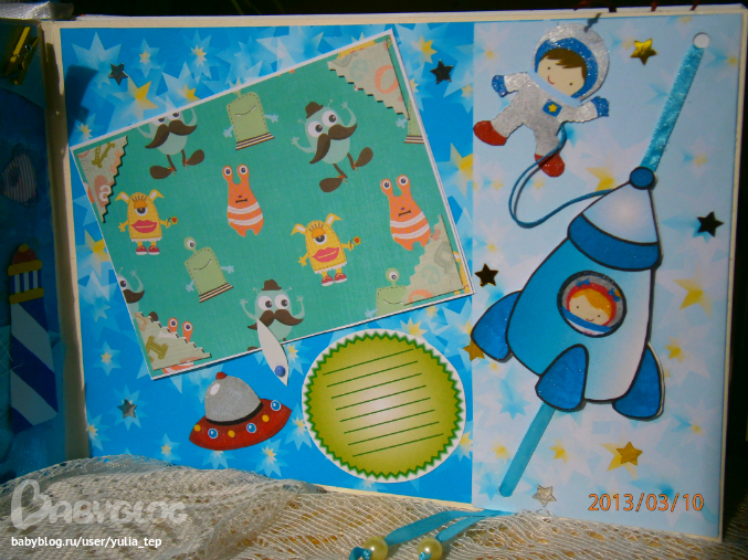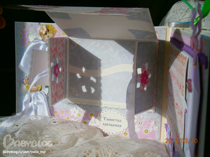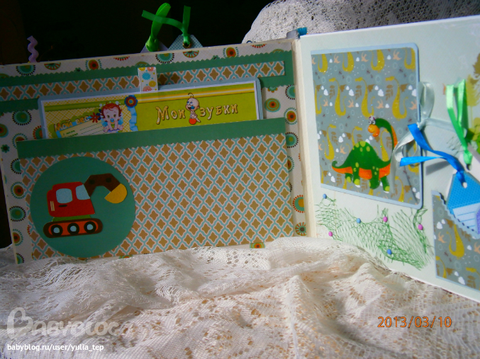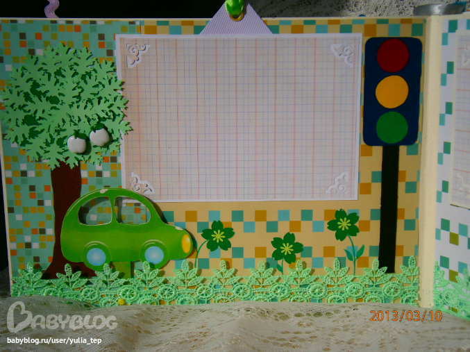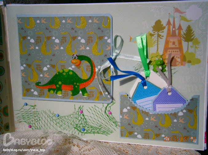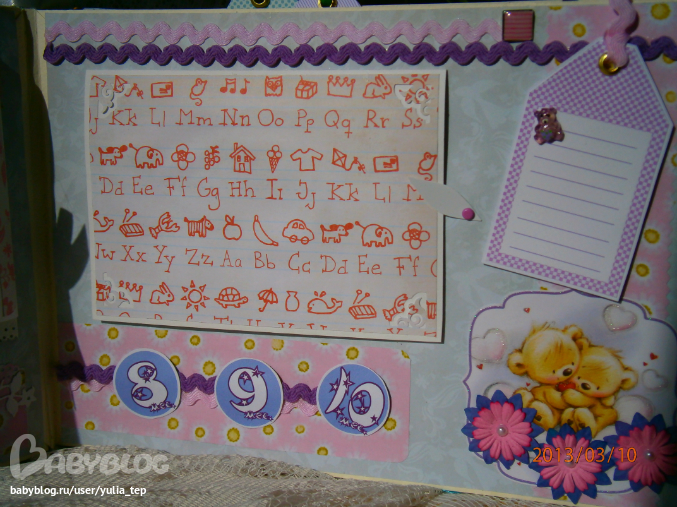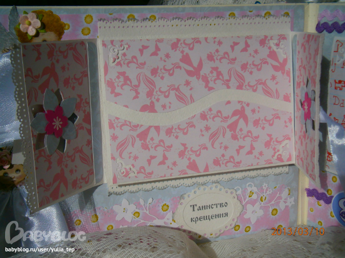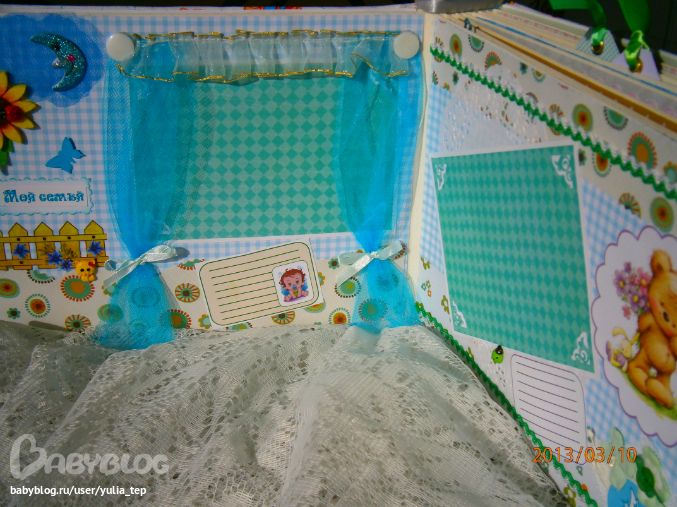 Разворот 12 мес. и первый ДР. Здесь косяк, тесьму криво приклеила((((