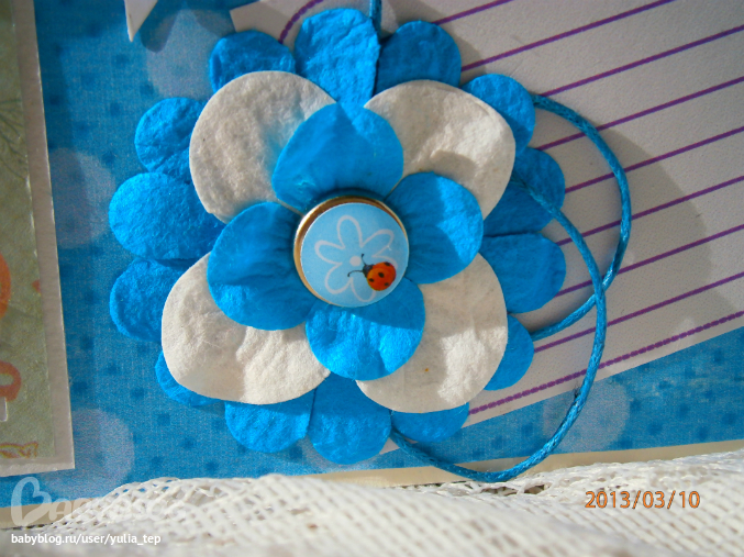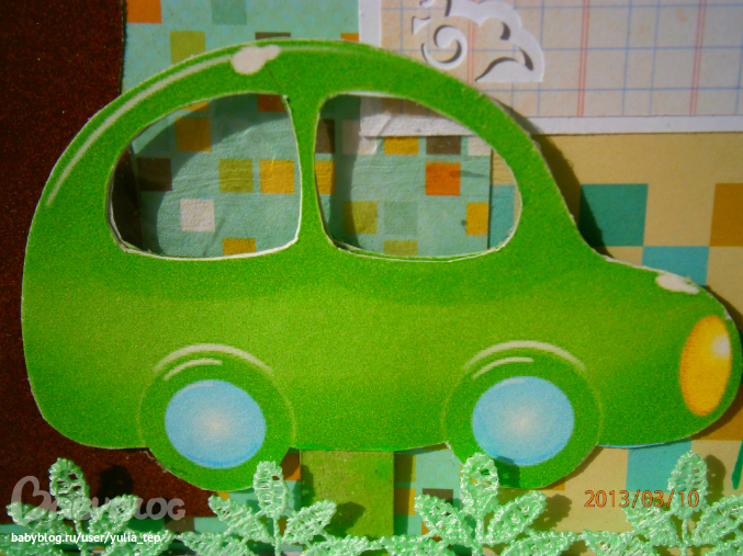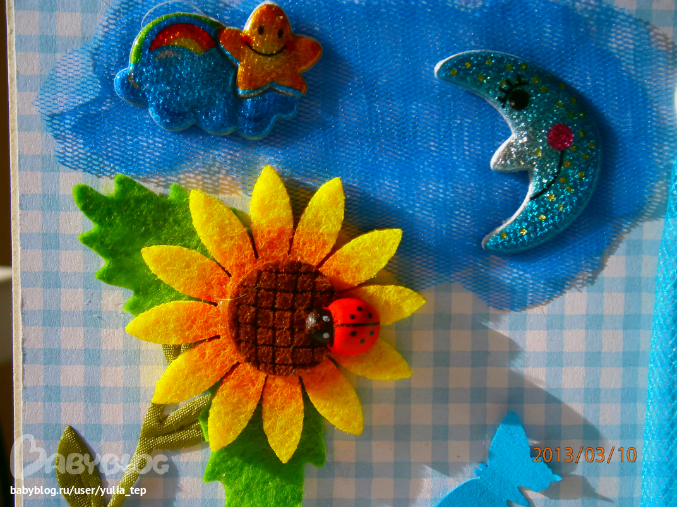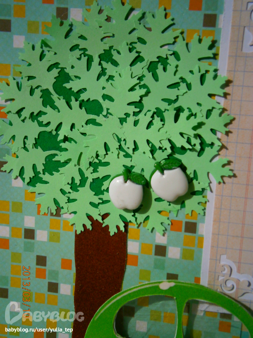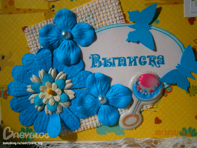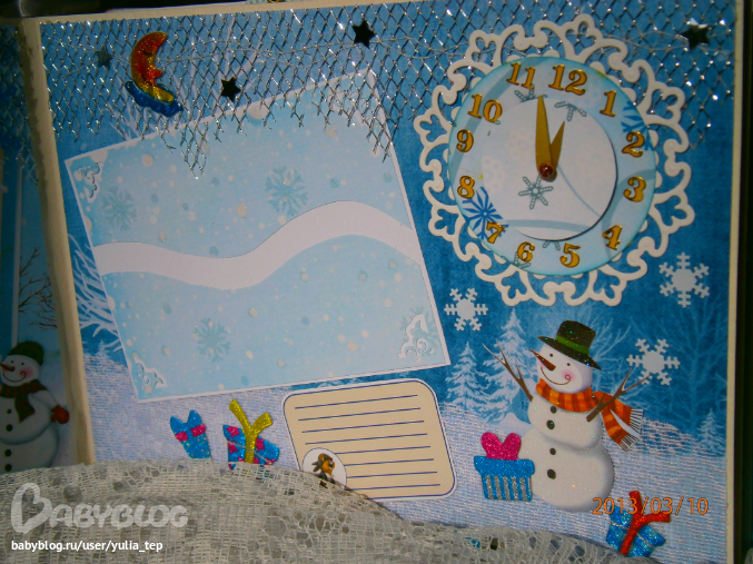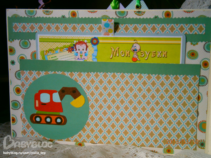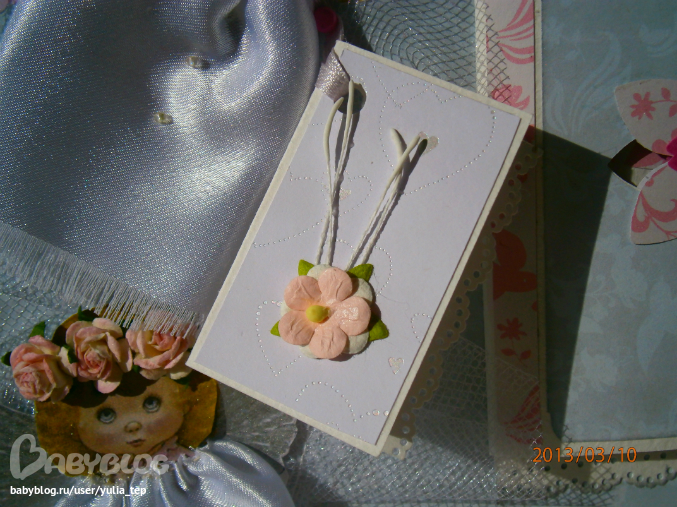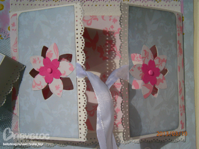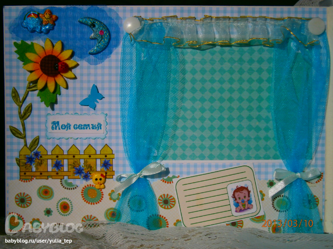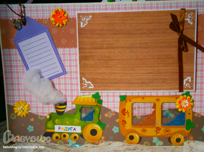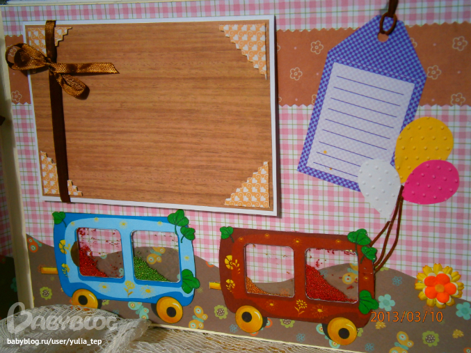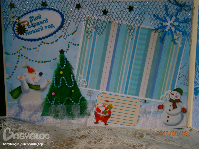 Разворот 12 мес. и первый ДР. Здесь косяк, тесьму криво приклеила((((