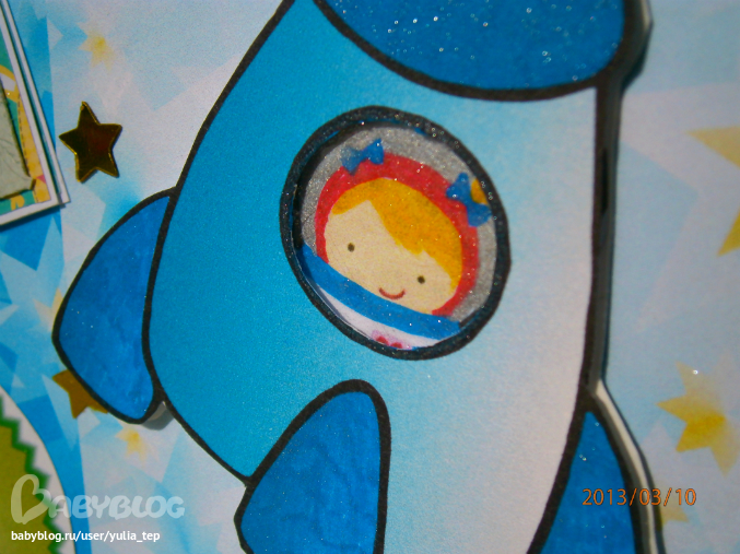 Ракета летает вверх-вниз, если потянуть за ленточки. Идея полностью моя))))