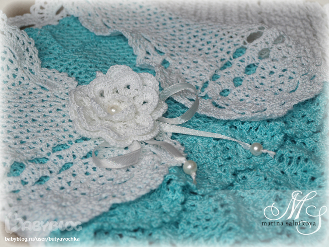 Размер на 1 годик, связано из пехорки ажурной (льдинка), расход на платье 120гр, болеро90гр.