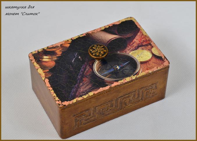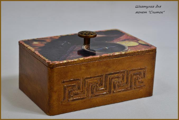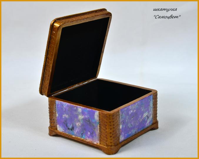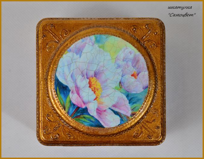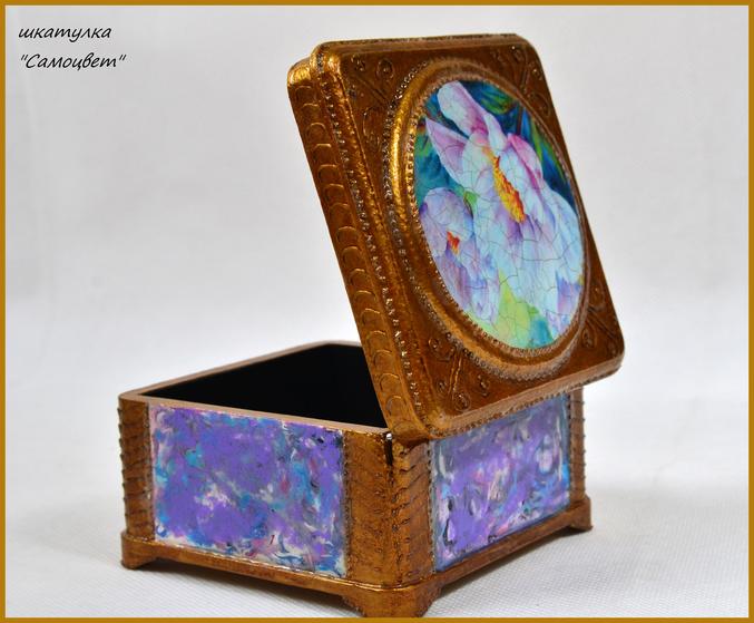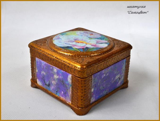 И выставляю шкатулку , которая должна была учавствовать в конкурсе , проводимым Школой декупажа Натальи Шихаревой, но к сожалению не успела. Имитация золотой чеканки, имитация камня чароит. Шкатулка станет подарком для подруги, покинувшей Россию, и будет памятью о родине, так как камень чароит добывают только в России.