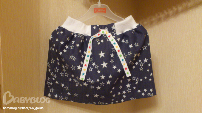 Сшилась ровно месяц назад юбочка из джинсы, пояс из трикотажа, с ленточкой в поясе. Просто и легко!