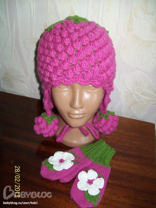 Шапочка малинка с варежками 200грн,+ ваша пересылка, остальные шапочки по 100грн + пересылка
