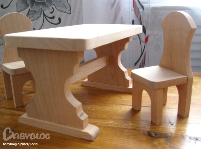 Размеры: Стул - высота (по спинке)17 см, сиденье 7см * 6 см., Стол - высота 14 см, столешница 24см *14см