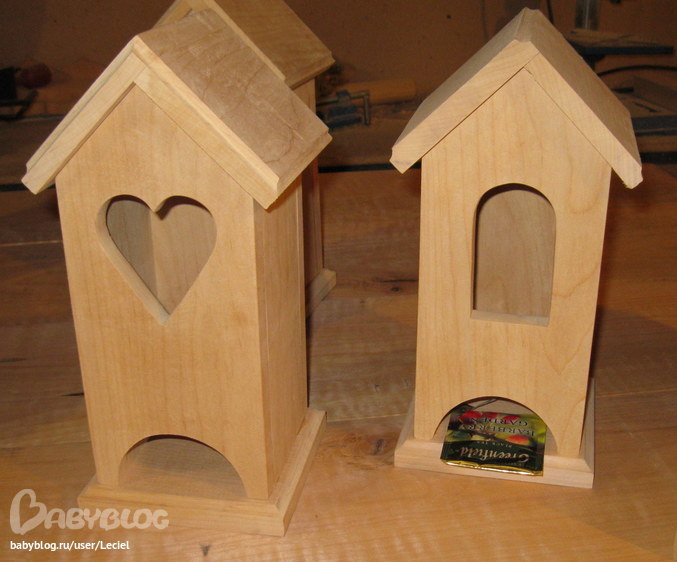 та, что повыше (с сердечком) - это из фанеры (толщина 8мм), вторая - из дерева - наверно потолще, но из дерева сделать тонкую совсем и не получится