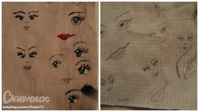 Когда рисую на бумаги или тренеруюсь глазки выходят немного получше....а начинаю рисовать на кукле не выходит ни чего(((