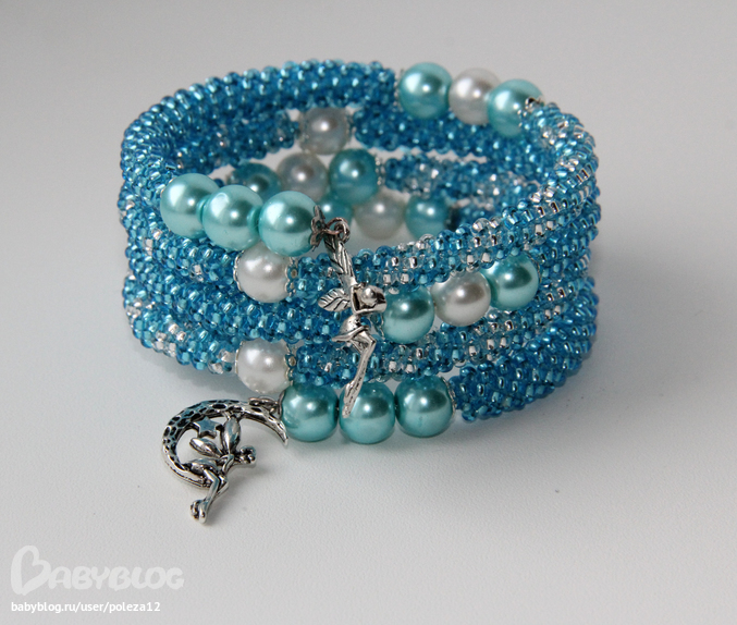 Спасибо!!! это проволка с памятью, жгут плела отрезками нужной длины, а потом нанизывала в перемешку с бусинами