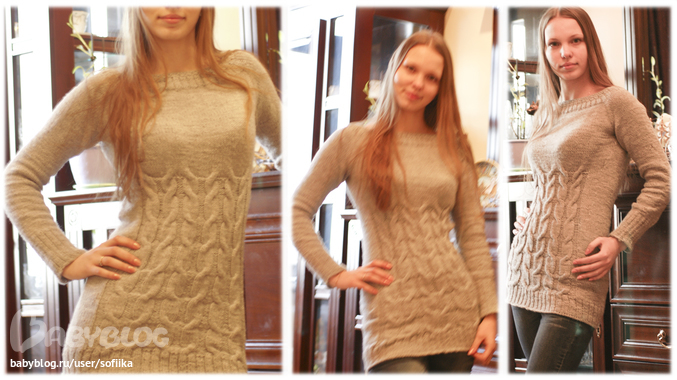 Мне тоже очень понравился второй свитерок! Вам очень идет! Подчеркивает все достоинства: и грудь, и стройную талию;) Вы без описания вязали?