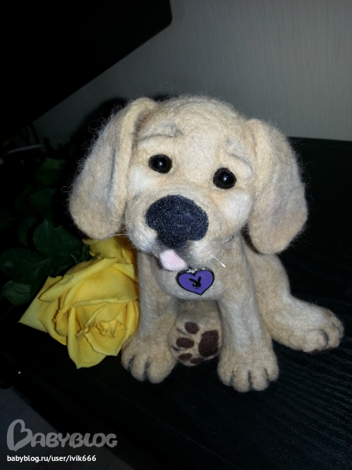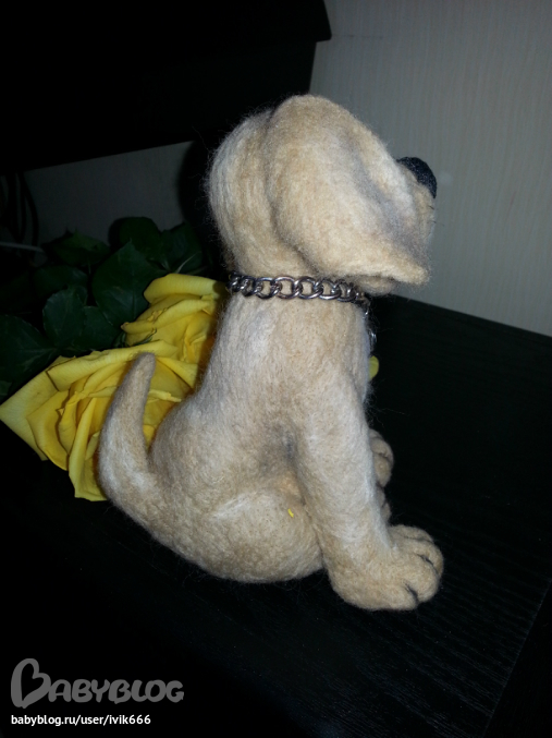 клёвенький пёсик. я тоже хочу попробовать щенка свалять, но пока занялась бусами (моей первой валяшкой)