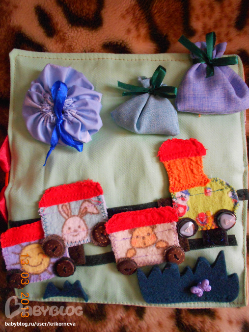 поезд на липучке и сенсорные мешочки -мягкий и твердый