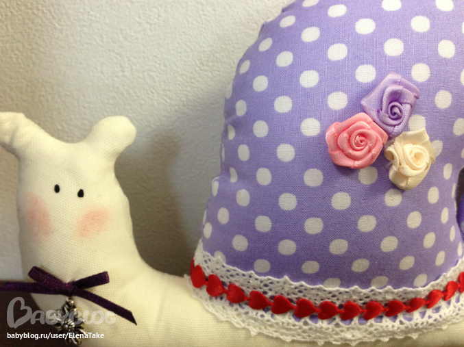 Вот научусь на машинке шить и сошью тоже игрушку,улитка похоже легче кукол и красиво, а розочки сама делала?