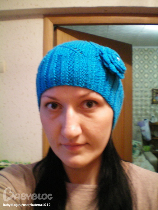 нтастика, угодила мне на все 1000% Я честно привереда, но шапка превзошла все мои ожидания, низкий поклон Катюш и большущее спасибо!!!! Вот она... Еще надо отметить, она вложила к шапочке вязанный цветочек, ТАК ПРИЯТНО!!!!