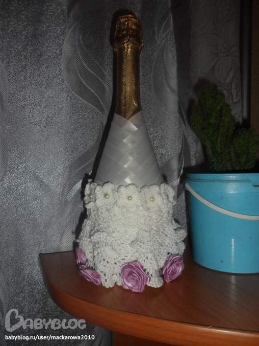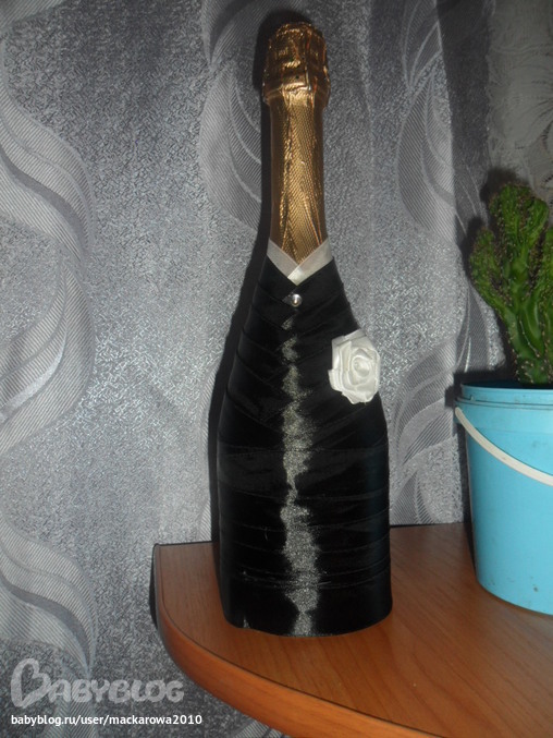 Это мой первый опыт в украшении бутылок, делала подружке на свадьбу, надеюсь понравится. Жду ваших коментариев. Критика приветствуется.