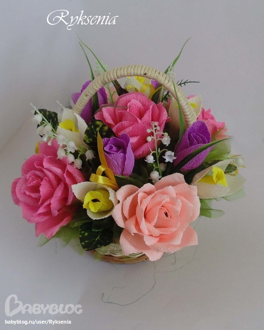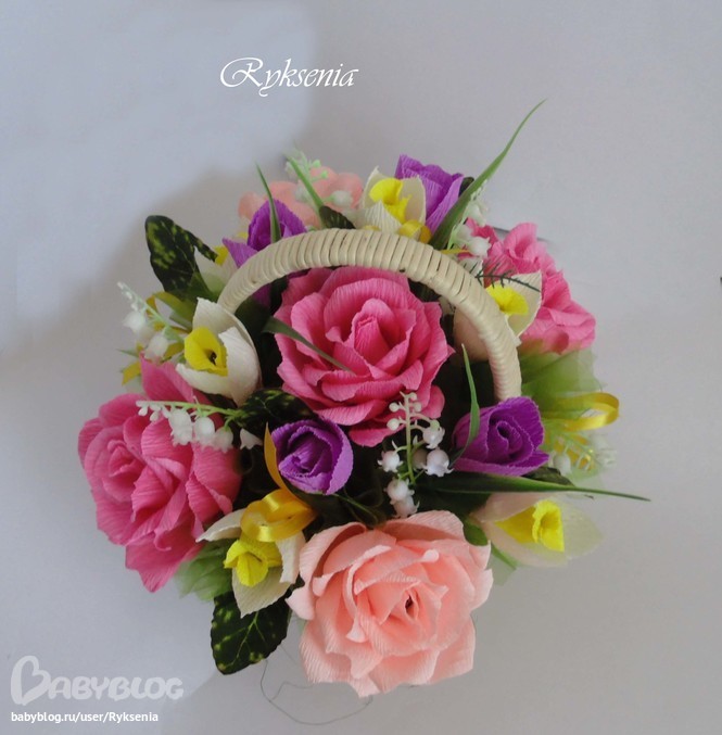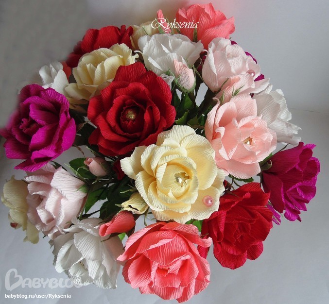 Спасибо! МК, к сожалению уже не найду, могу только сказать, если это поможет, сначала заворачиваю бутон в 2 лепестка, потом еще 2, затем 3 и потом 2 ряда по 4 лепестка. Длина каждой полрски гофры из которой нарезаются лепестки 14 см