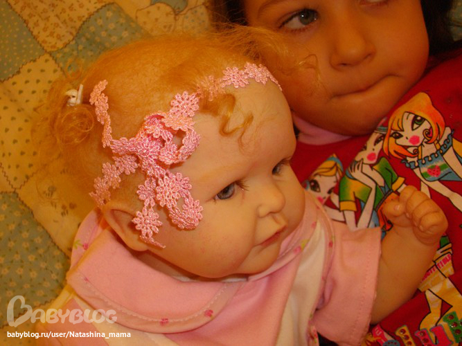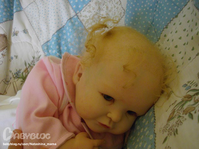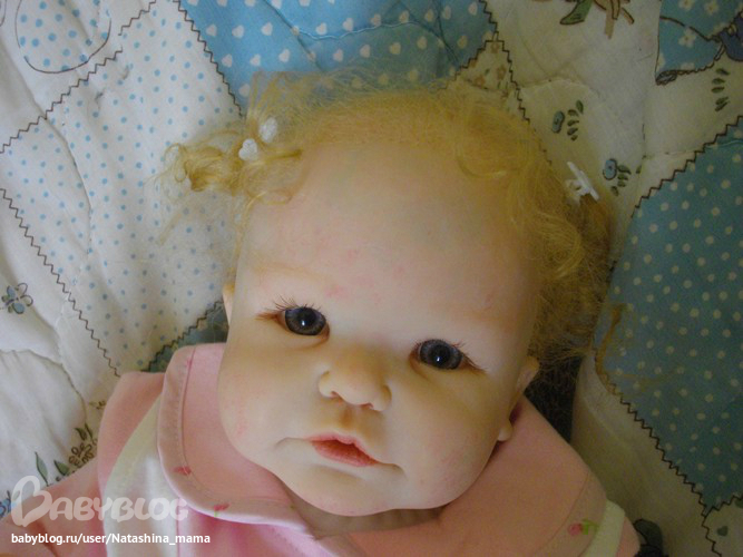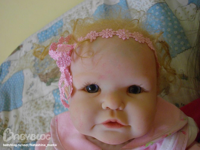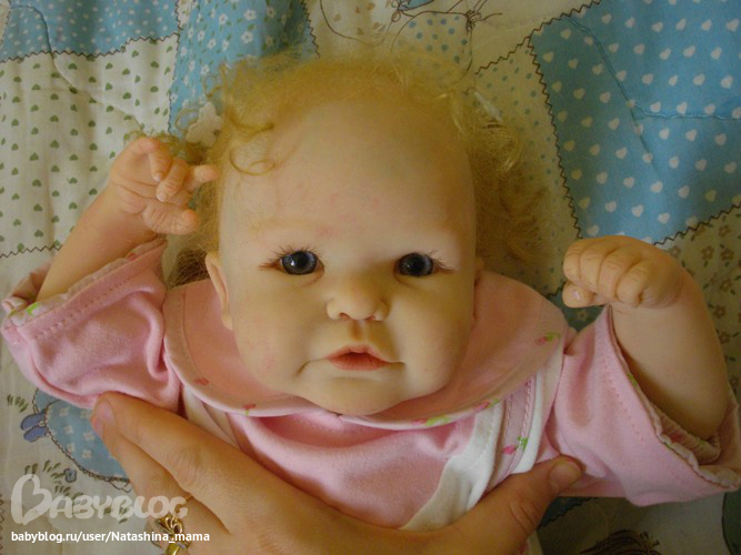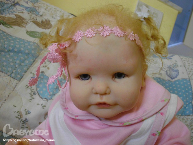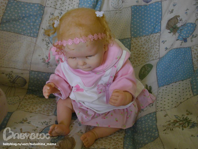 Сделана на основе молда Lidy от Didi Jacobsen, ростик 48 см, размер одежды 0 месяцев, глазки и волосики США "Реал эффект". Тело оригинальное, не самошитое, фланель, Германия, все на шплинтах, все крутится)))) Приедет в одежде, как на фото: платьице, панталончики, носочки и повязочка.
