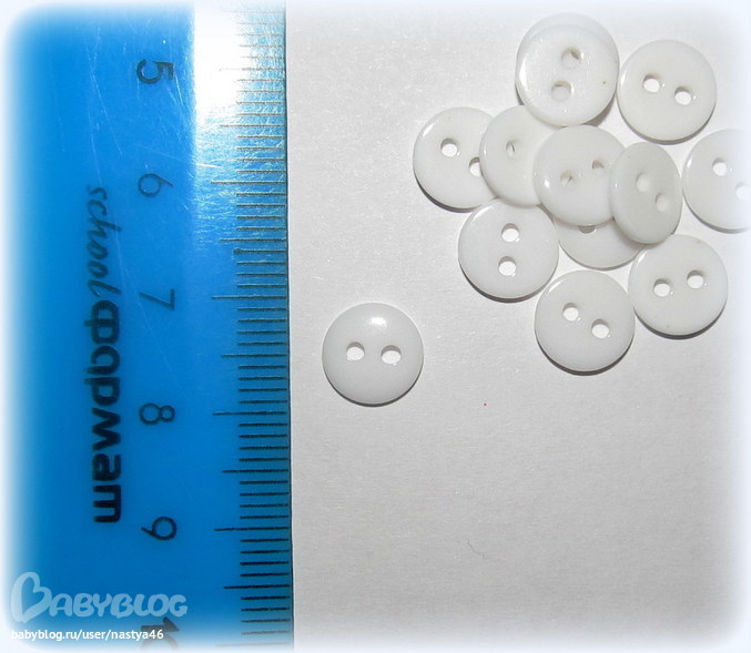 8. Пуговицы белые 9 мм набор из 10 штук - 10 руб.